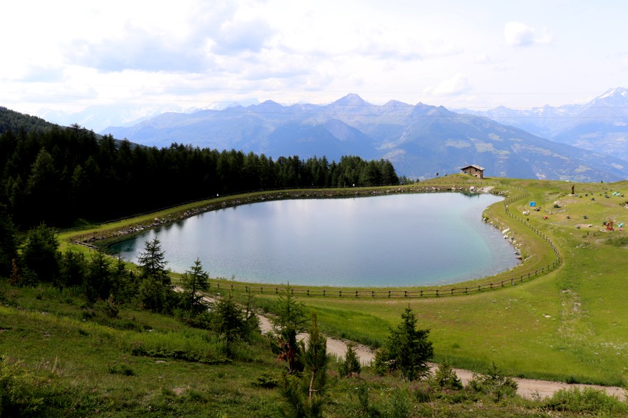 Dall'alto del Cuis1 una panoramica sulla valle con, in evidenza al centro della foto, il Lago della Nouva, da noi visitato alcuni giorni prima.