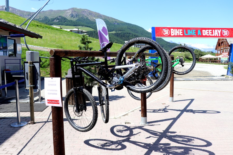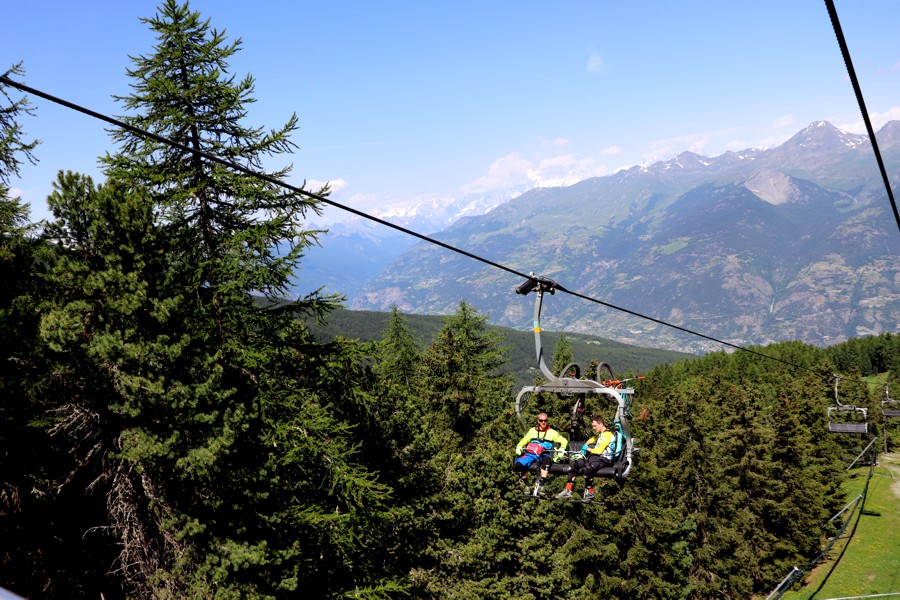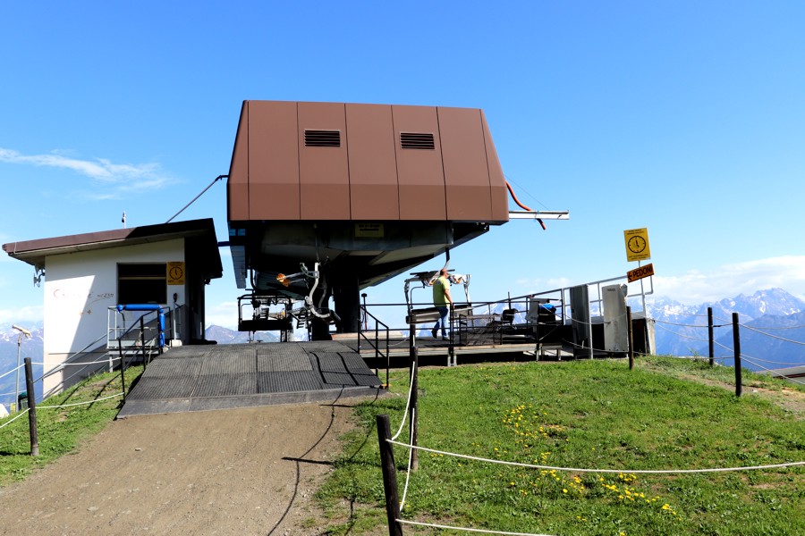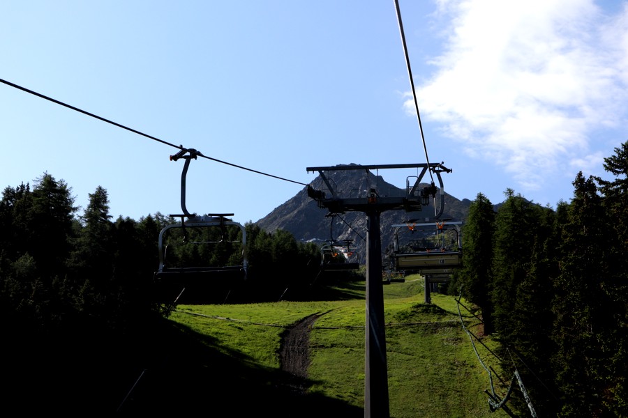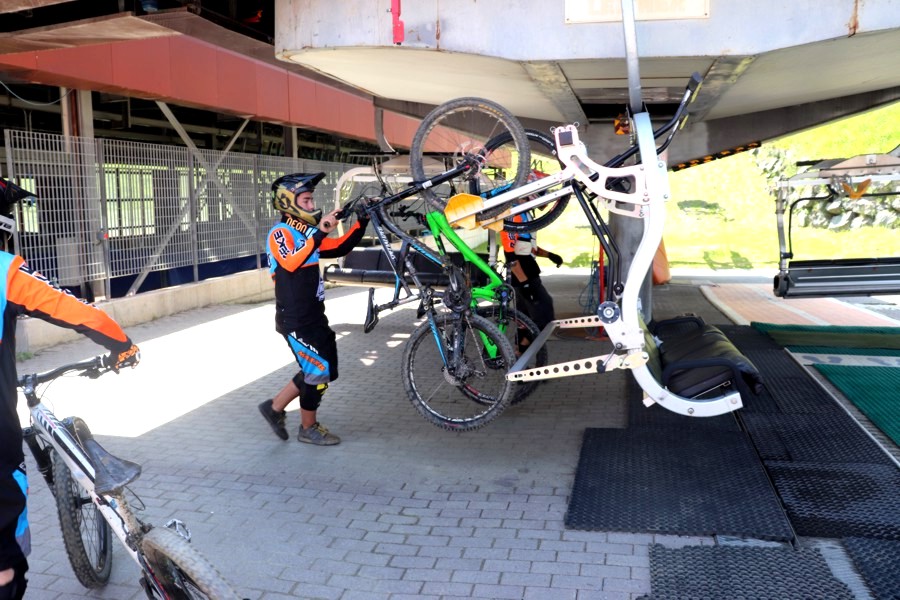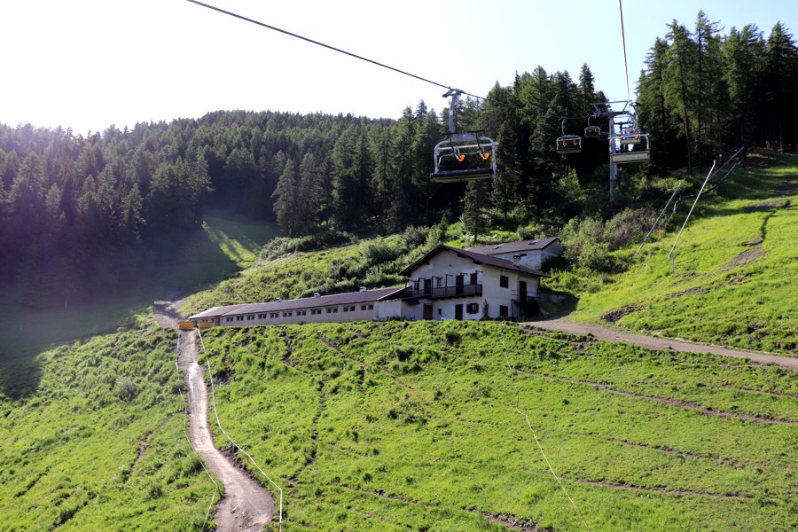 Siamo nel cosiddetto "Paradiso delle Mountain-Bike" e alla partenza della seggiovia vediamo come i bikers si portano dietro la bicicletta per poi pedalare in altura e,
