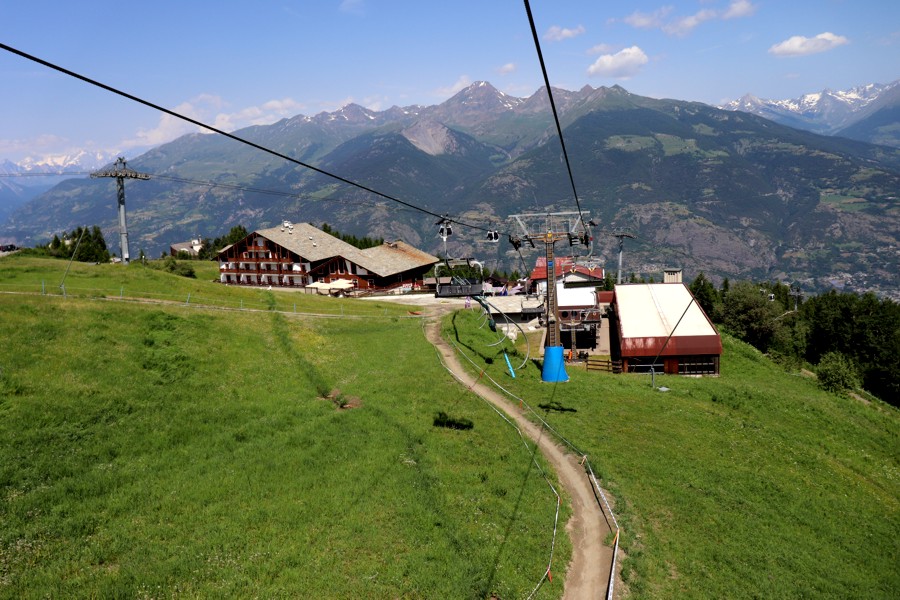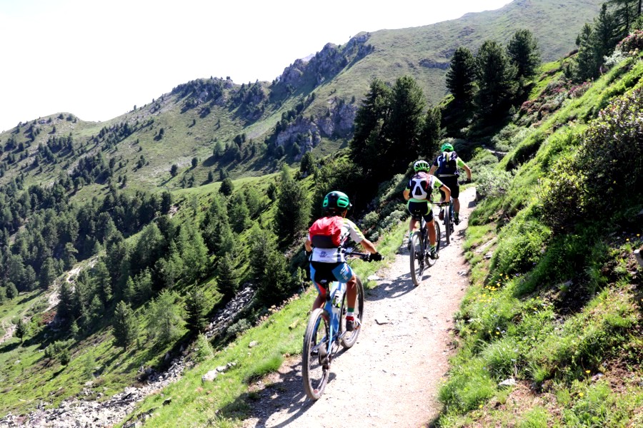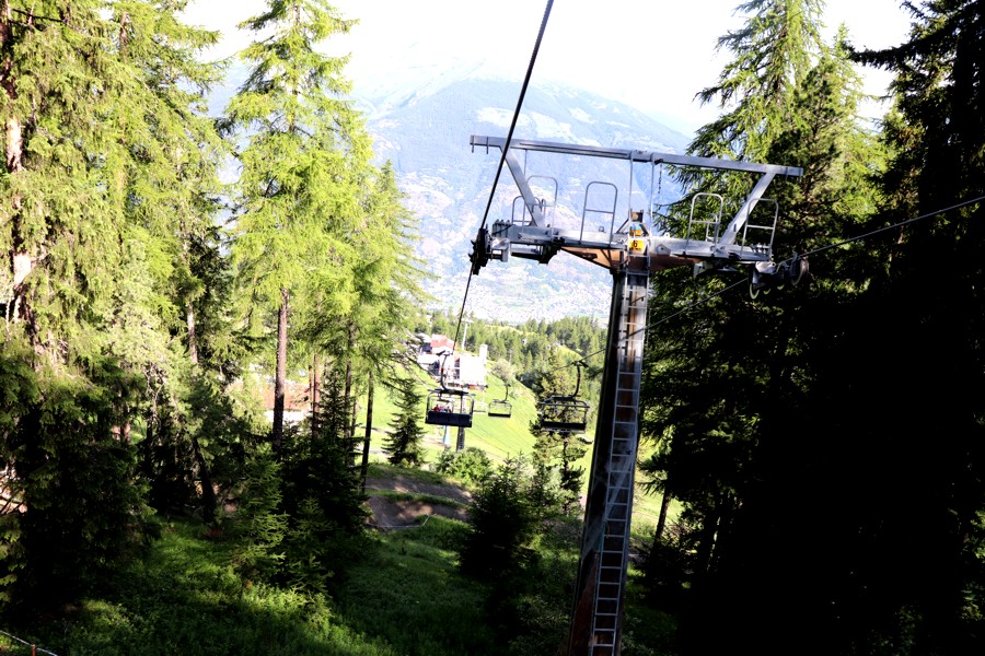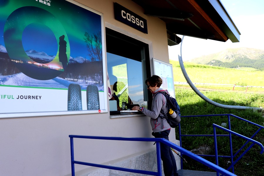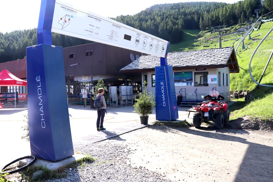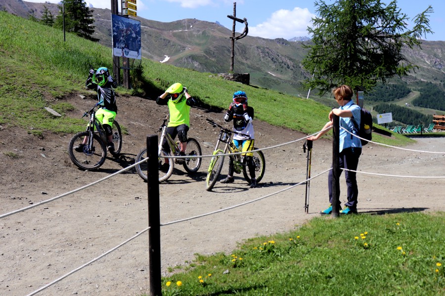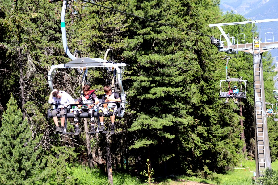 Siamo nel cosiddetto "Paradiso delle Mountain-Bike" e alla partenza della seggiovia vediamo come i bikers si portano dietro la bicicletta per poi pedalare in altura e,