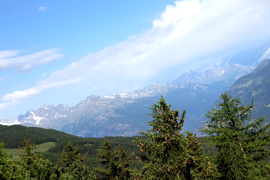 Il panorama, intorno a noi, è di una bellezza sconvolgente, per chi ama la montagna. Dal Gran Paradiso ad ovest fino al Monte Rosa ad est passando per Les Grandes Jorasses,