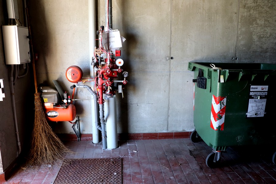 Non potevo terminare questa rappresentazione fotografica di Pila senza evidenziare un particolare interessante. A poca distanza dal nostro condominio c'era un luogo, chiuso con una grossa porta di legno che custodiva, al suo interno tutta una serie di cassonetti destinati ad accogliere i rifiuti urbani della zona. Un luogo organizzato per davvero molto bene con una grande cura nella pulizia del deposito. Infatti ogni giorno un mezzo della nettezza urbana era presente per la raccolta differenziata. Non abbiamo mai visto un cassonetto che traboccasse di immondizia.