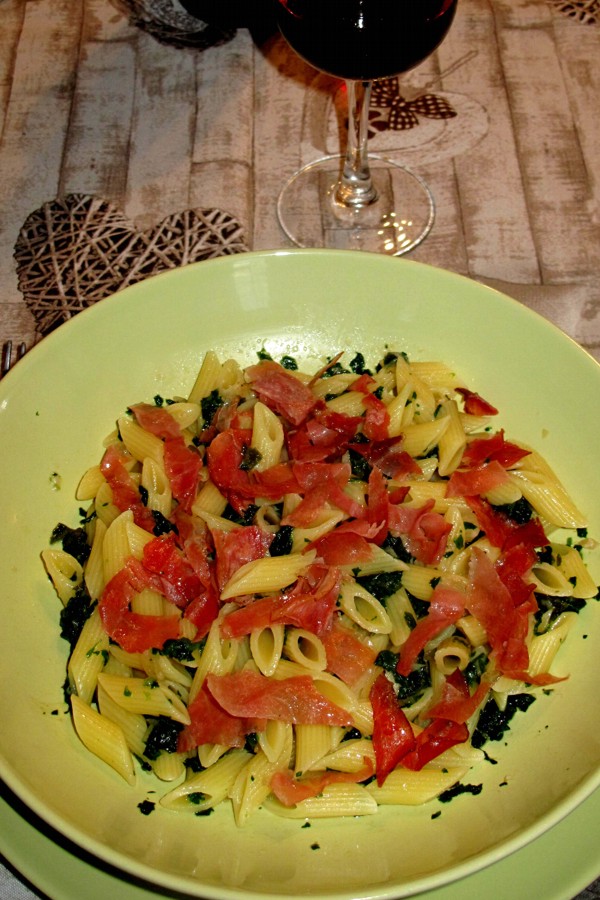 Rigate agli Spinaci Selvatici, Malva e Speck". Degno accompagnatore di questo piatto