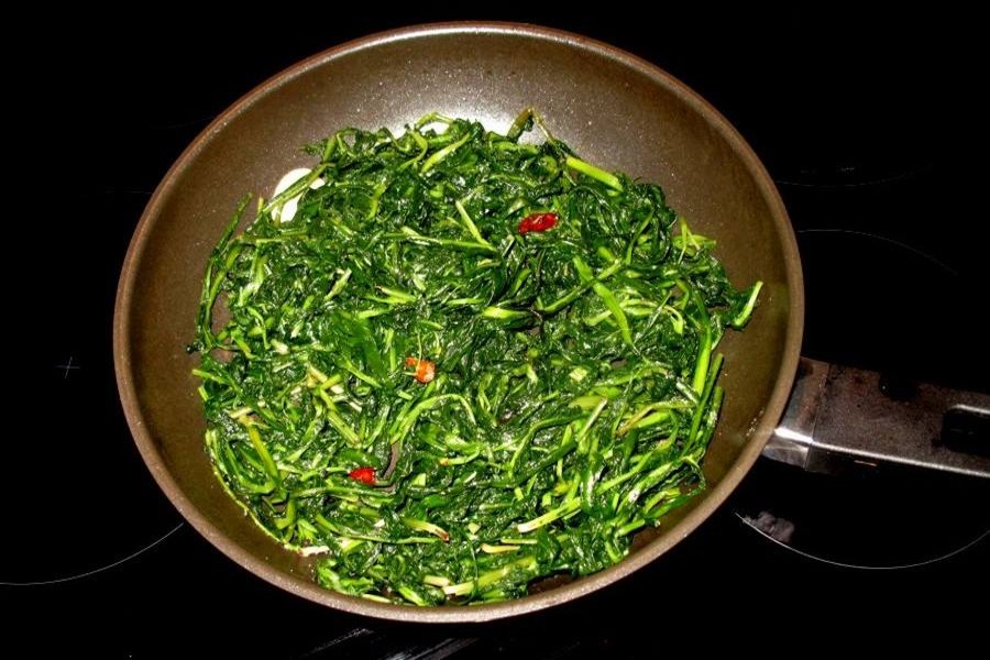 "tiella" (v. foto) di Tarassaco ripassato con aglio, olio e peperoncino. Fausta