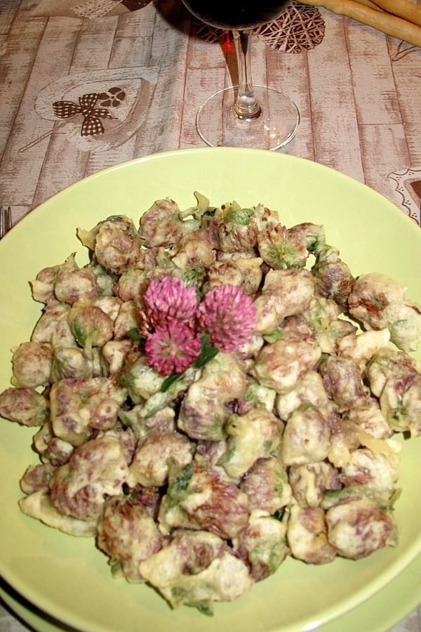 Questa sera, per utilizzare la seconda metà delle erbe raccolte ieri, Fausta
