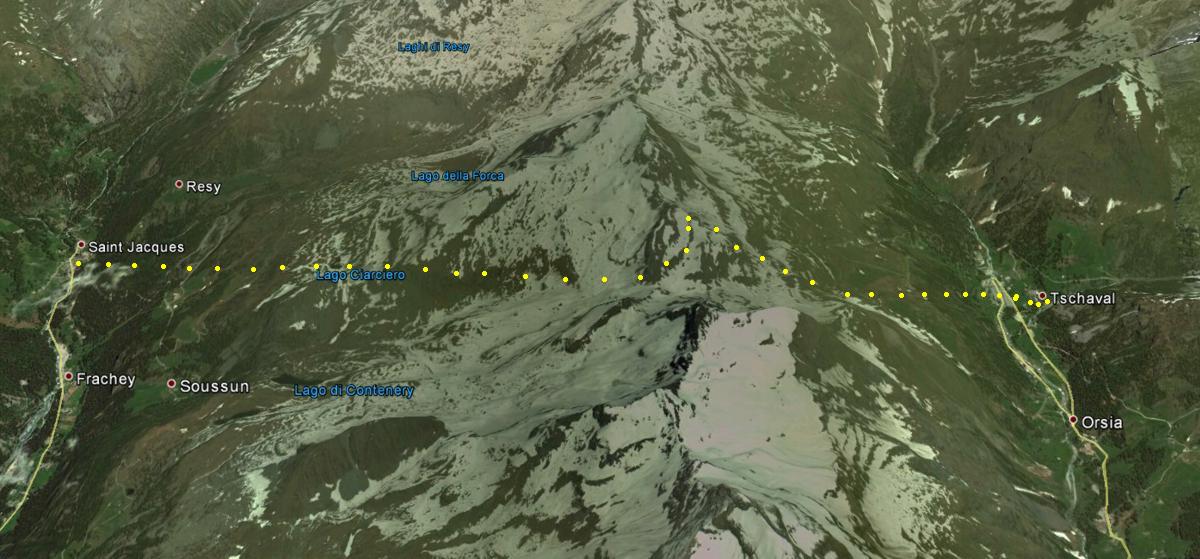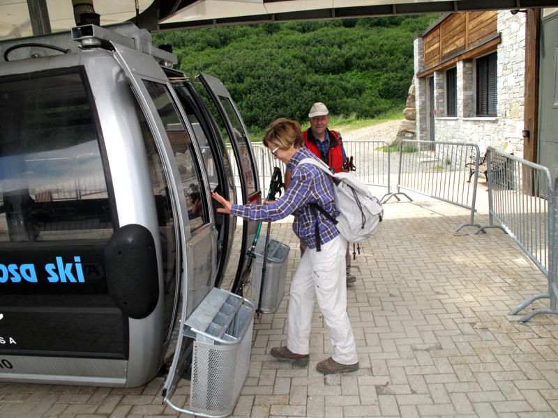 Il 20 luglio, anche se il tempo non era il massimo, abbiamo deciso di andare a fare una gita molto originale, cioè la traversata di tre valli, e precisamente dalla Val d'Ayas alla Valle del Lys per finire alla Valsesia. Il tragitto si fa un po' a piedi ma soprattutto con funicolari, funivie, ovovie, seggiovie, cabinovie e chi più ne ha più ne metta.