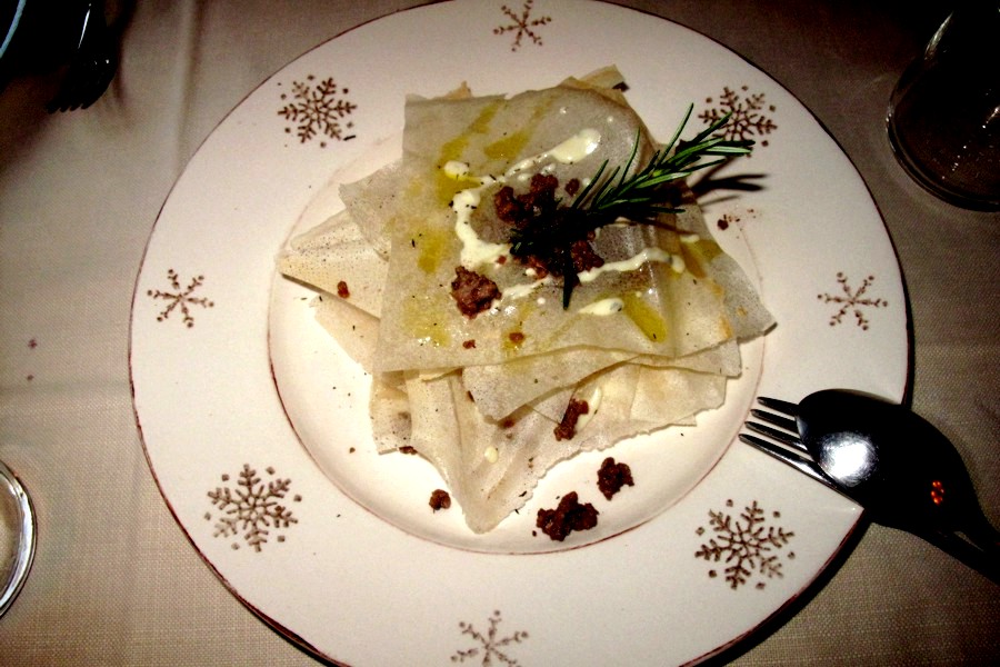 Foto 31/40 - Osteria Il Balivo. Il Millefoglie con Ragù di Pezzata Rossa e Fonduta di Bleu d'Aoste. .
