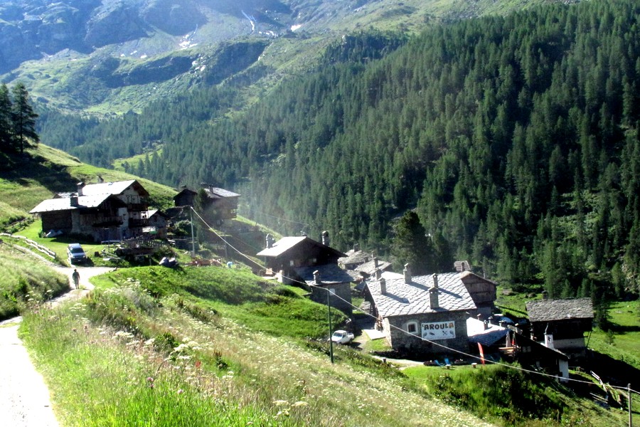 e spesso d'inverno. Permangono le tracce Walser di questo stupendo borgo appostato sul pendio soprastante il fondo del vallone di Cuneaz, tra boschi tranquilli e pascoli lussureggianti, creando
