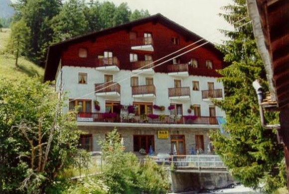 di fronte alla chiesa, al di là del torrente, l'Evançon, direttamente sopra