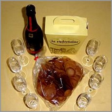 lo facciamo col Prosecco Superiore di Cartizze Villa Sandi che ci siamo portati proprio per l'occasione e gustiamo le famose Tegole di Verrés.