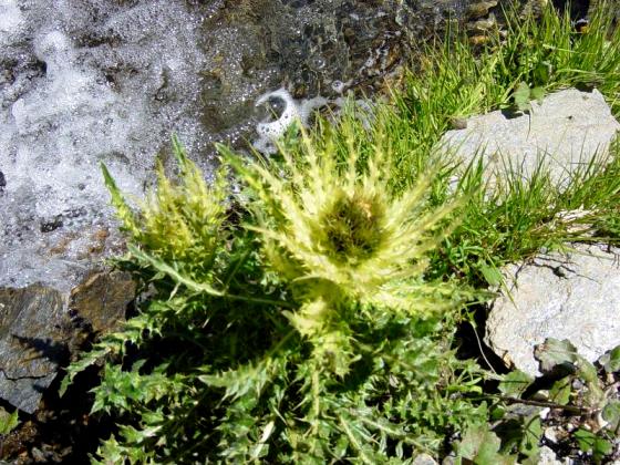 Esemplare di cardo selvatico (Cirsium spinosissimum) lungo la riva del torrente