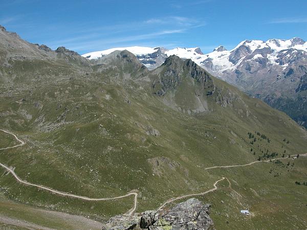 al centro/sinistra) il Lago Bleu (mt. 2220) e la strada
