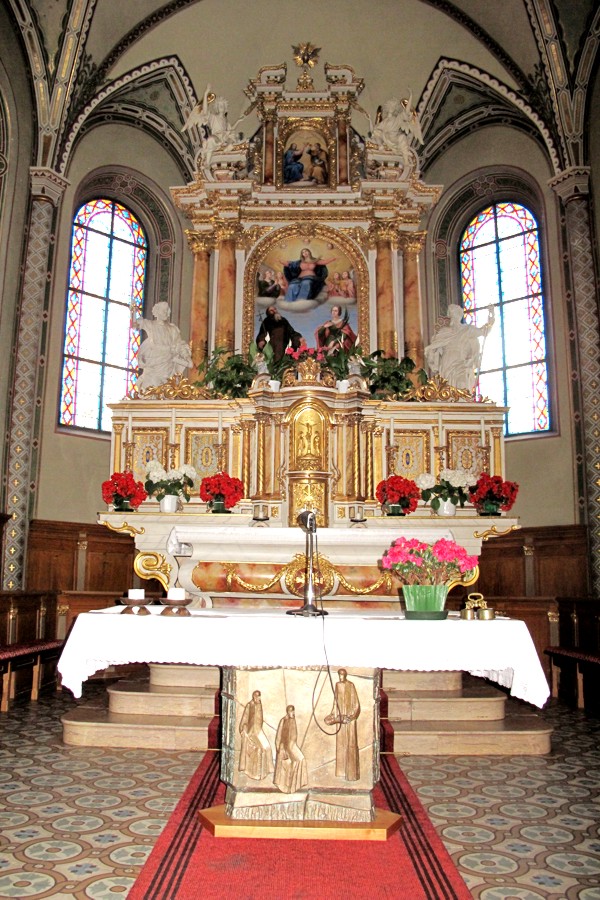l’altare maggiore, opera della famosa dinastia di artisti Vinazer.