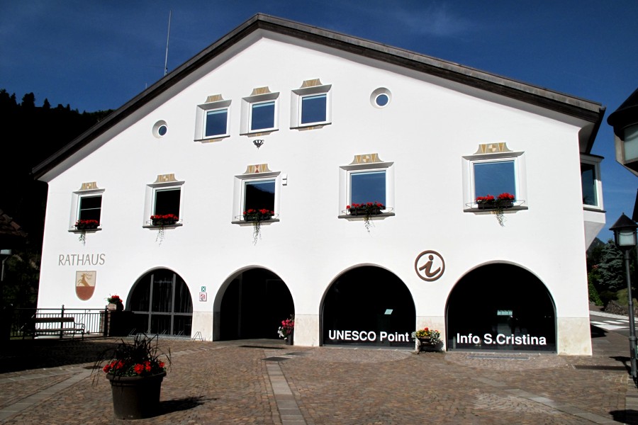 La sede del Municipio di Santa Cristina con l'Ufficio Turistico della Val Gardena.