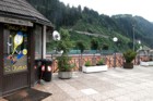 Una bella casa decorata con, al pianoterra, un negozio di souvenir e di articoli di legno intagliati. E' Deur,