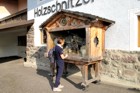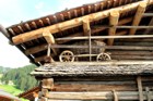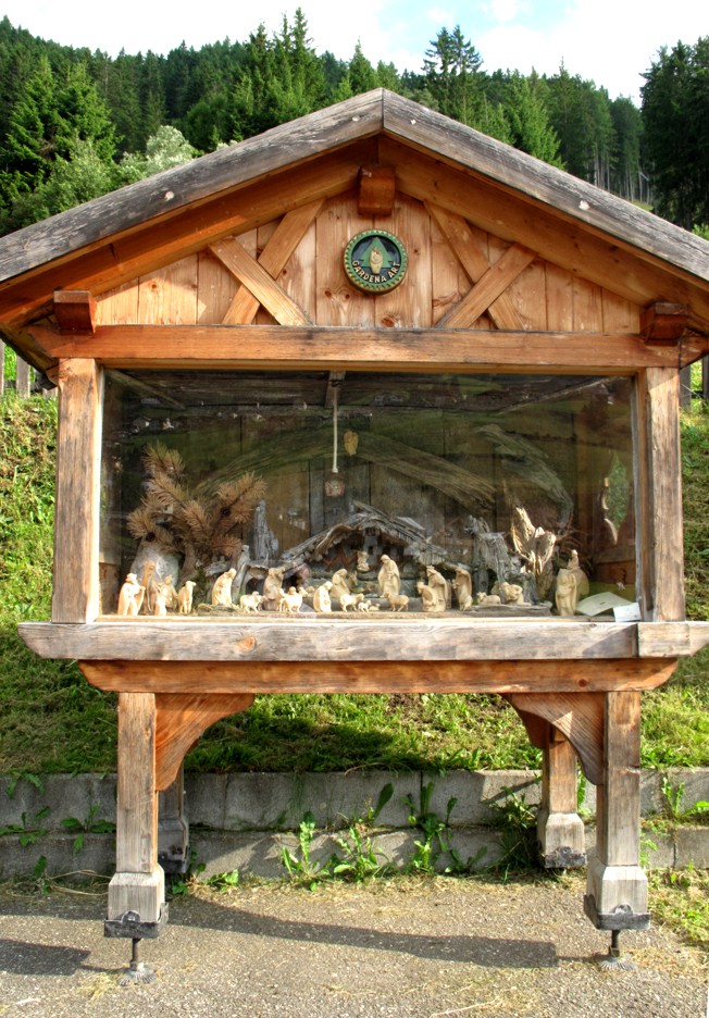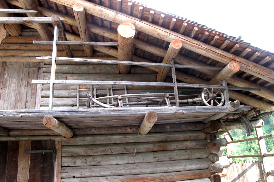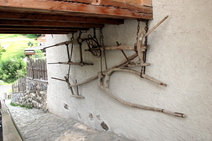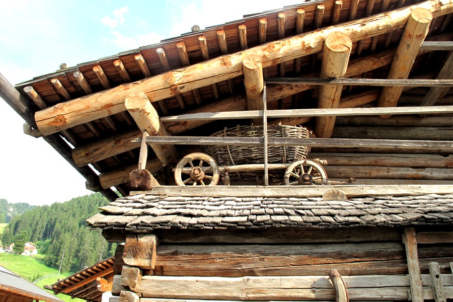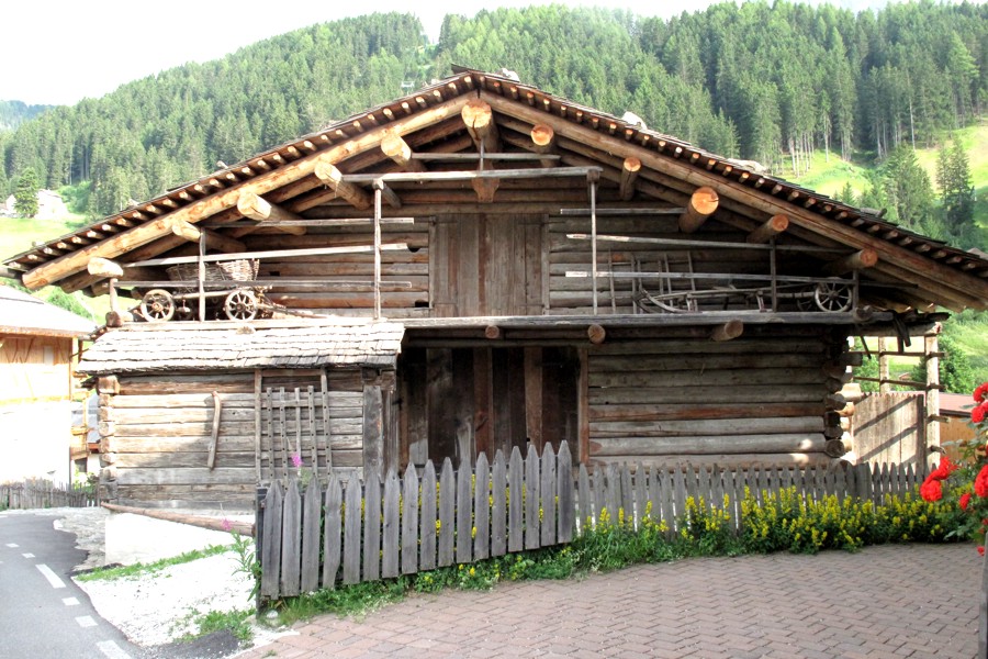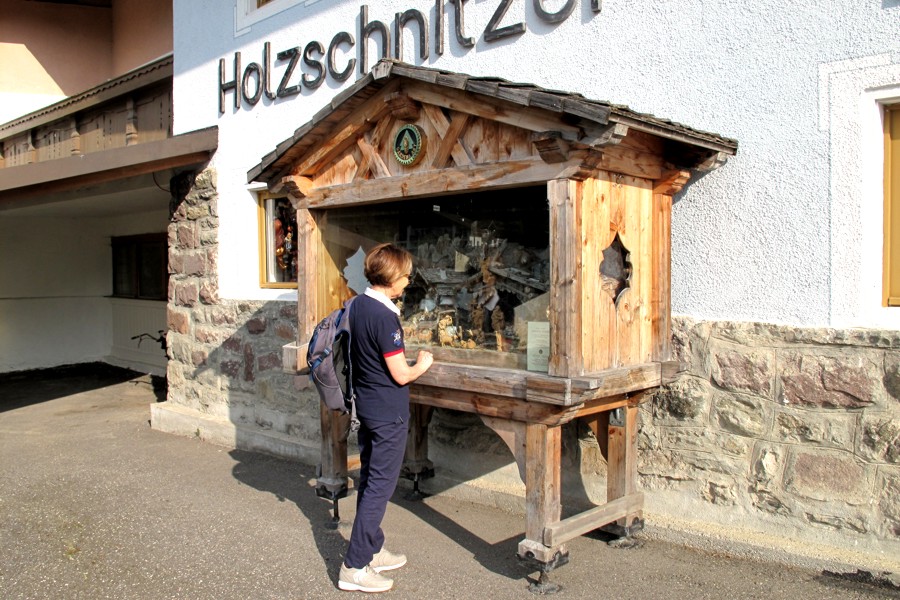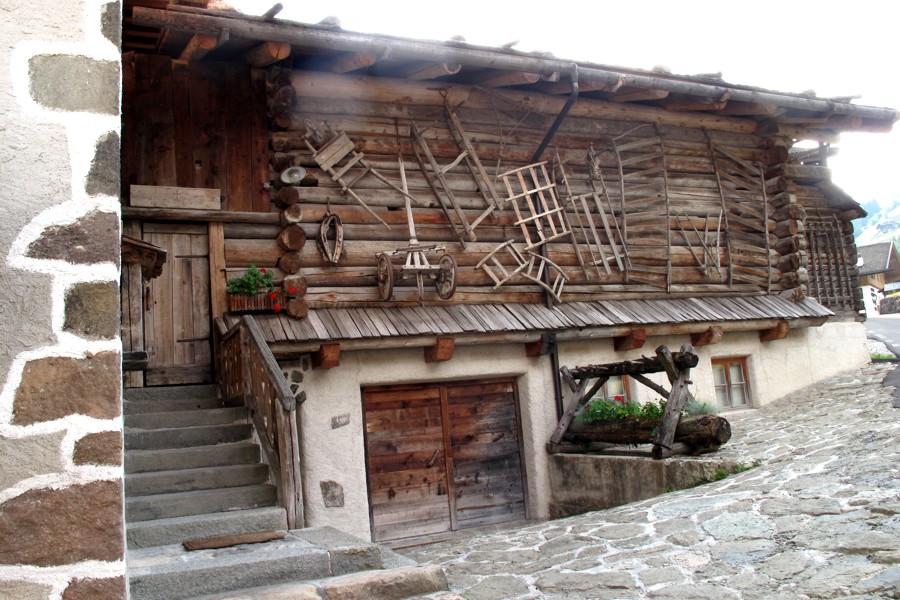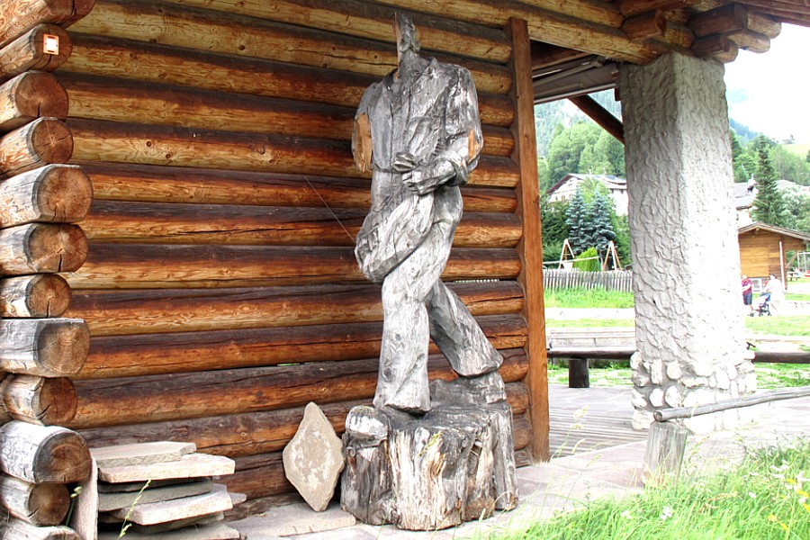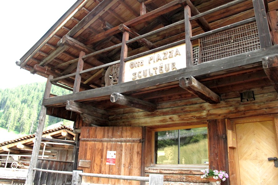 In giro per il paese ci imbattiamo in baite adibite a laboratorio, come questa dello scultore Otto Piazza.