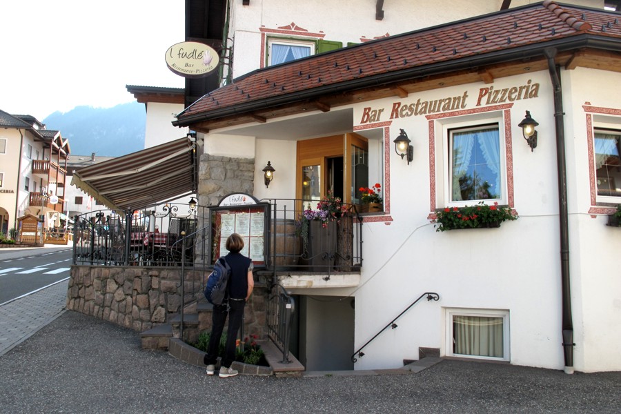 In via Dursan, la strada principale del paese, ci soffermiamo a leggere il menù di un locale, "L Fudlé", che ci