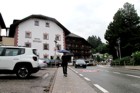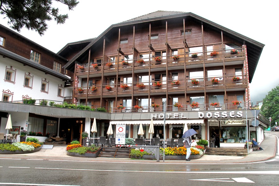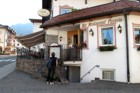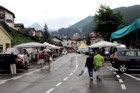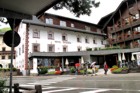 possono attraversare il paese. Sullo sfondo l'antico Hotel Posta.
