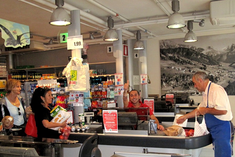 Siamo al Despar e il nostro amico Leonardo (l'abbiamo conosciuto l'anno scorso a Castelrotto) ci saluta