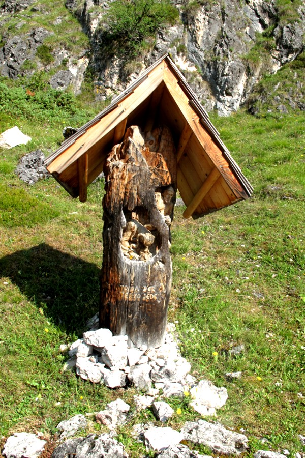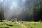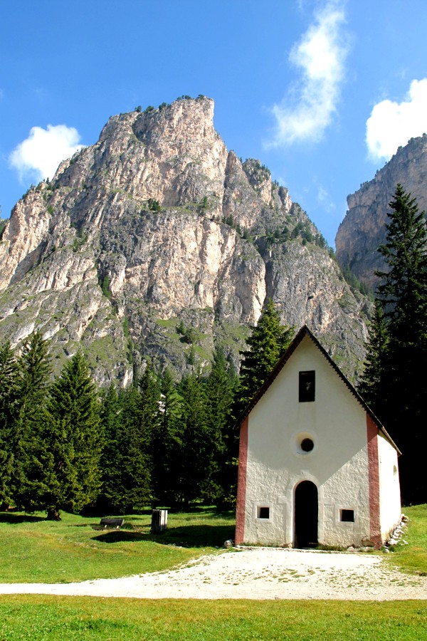 Torniamo verso Selva e alle nostre spalle distinguiamo ancora la cappella di San Silvestro adagiata, all'inizio della Vallunga, sotto le cime