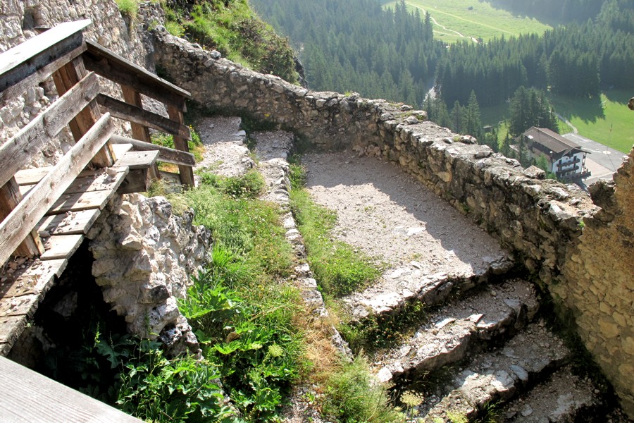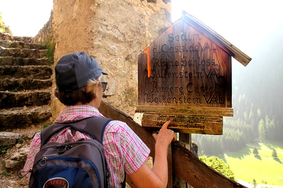 Lungo il percorso è possibile fare una deviazione per visitare i ruderi del Castello di Wolkenstein che era abbarbicato proprio intorno alla montagna e che era stato costruito per evidenti scopi difensivi.