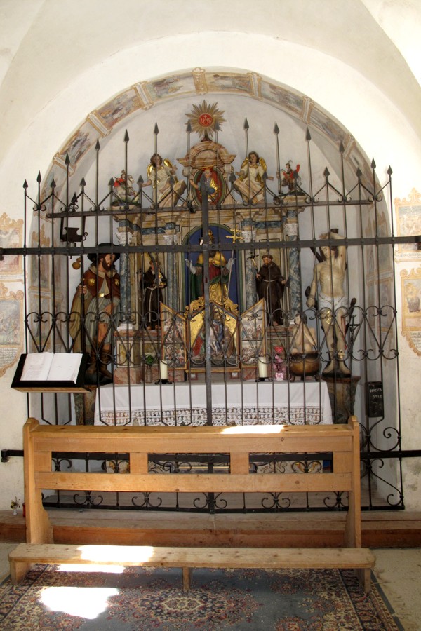 Vista frontale della Cappella di San Silvestro. Alle sue spalle lo Stevia.