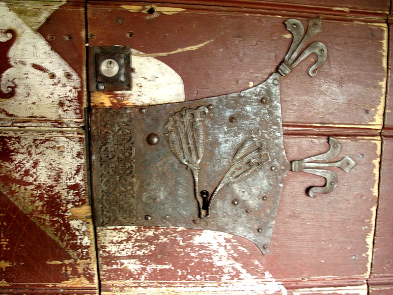 Foto 9/55 - Castel Presule. Un particolare della maschera della serratura del portone d'ingresso.
