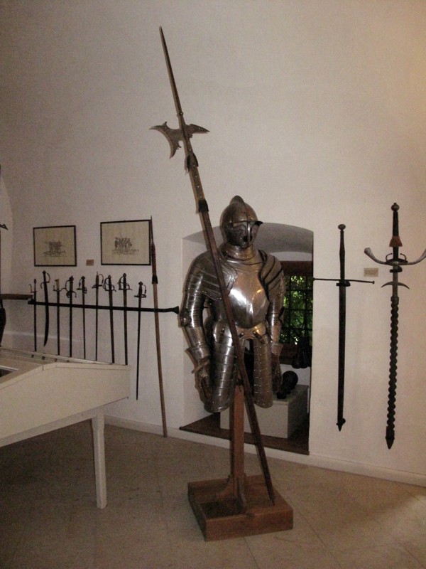 Foto 12/55 - Castel Presule. Sala d'armi. Una armatura completa di alabarda.