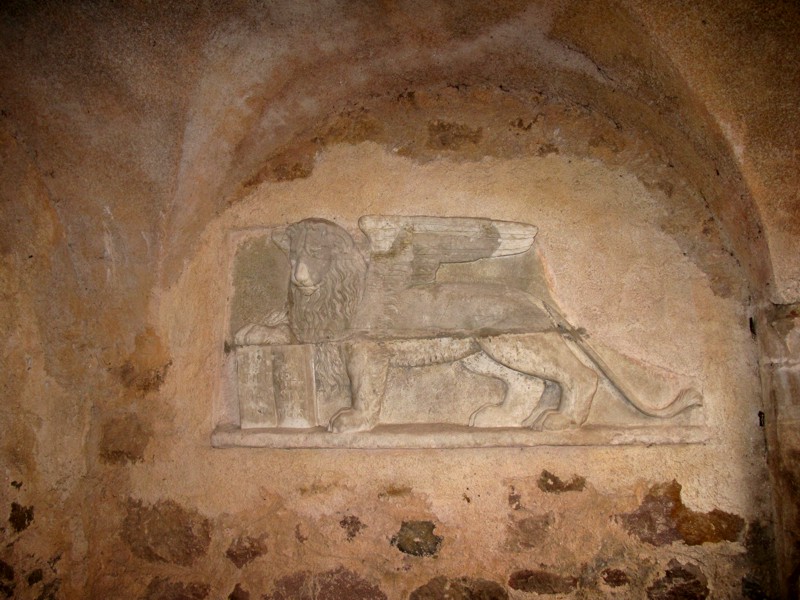 Foto 52/55 - Castel Presule. Uscendo notiamo una cosa della quale non ci eravamo accorti all'ingresso. Sul muro a sinistra del portone d'accesso al cortile campeggia un simbolo inequivocabile della Repubblica Veneta: il Leone di San Marco.