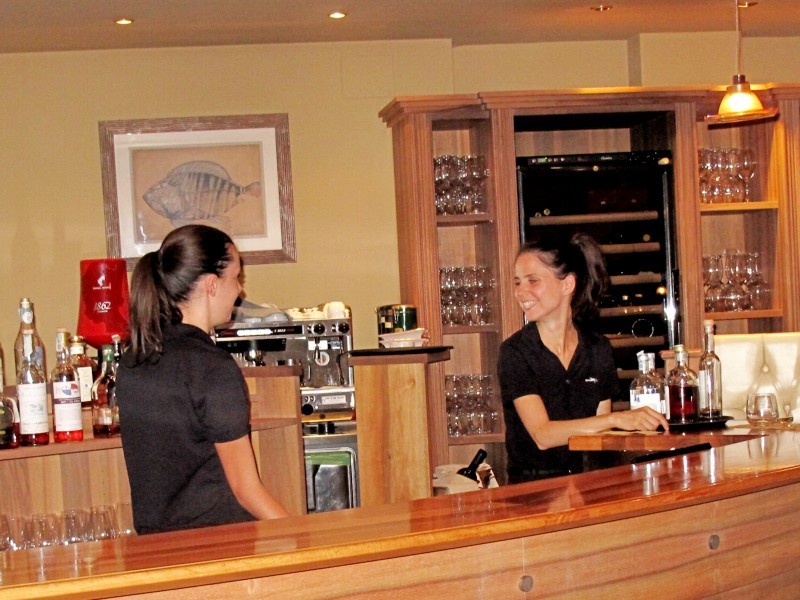 Foto 17/20 - La ragazza di destra si chiama Lisa ed è la gentilissima assistente di sala che si è presa cura di noi, con grande disponibilità, nel corso della cena al Sasseg. Qui sta allestendo, con molta cura, il