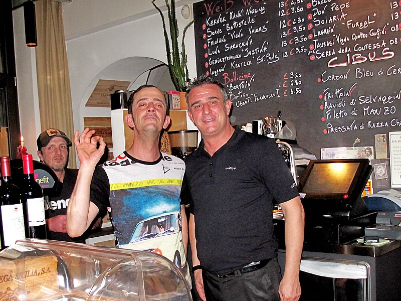 Foto 18/20 - Insieme a Fausta c'è Gianluca, il proprietario del Sasseg. Dopo averci «coccolati» nel corso della cena nel suo ristorante ci ha voluto mostrare anche il Sasso's, l'Wine Bar che si trova al piano terra del