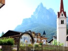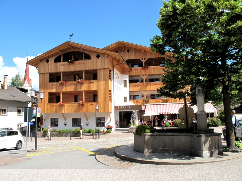 Foto 9/40 - Siusi. Da piazza Wolkenstein l'Hotel Europa, anch'esso albergo rinomato del paese. In primo piano