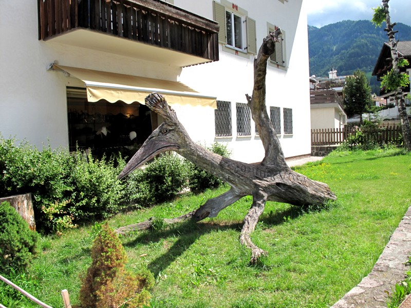 Foto 13/40 - Siusi. Piazza Wolkenstein. Una simpatica scultura in legno, che rappresenta, probabilmente, un volatile