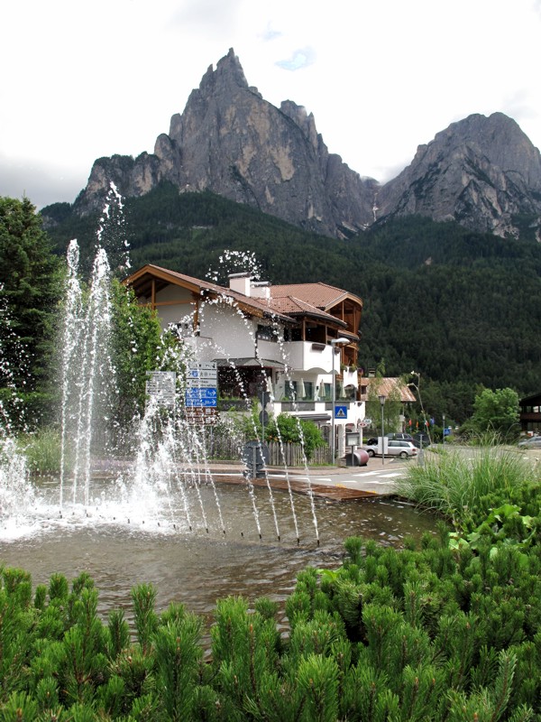 Foto 16/40 - Siusi. Questa bella fontana zampillante si trova al centro della rotatoria che si incontra alla fine di via