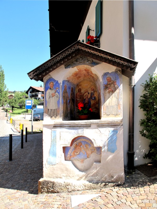 Foto 23/40 - Siusi. Alla fine della strada, all'incrocio con via Laurin, c'è una edicola con immagini di santi e religiosi appartenenti,