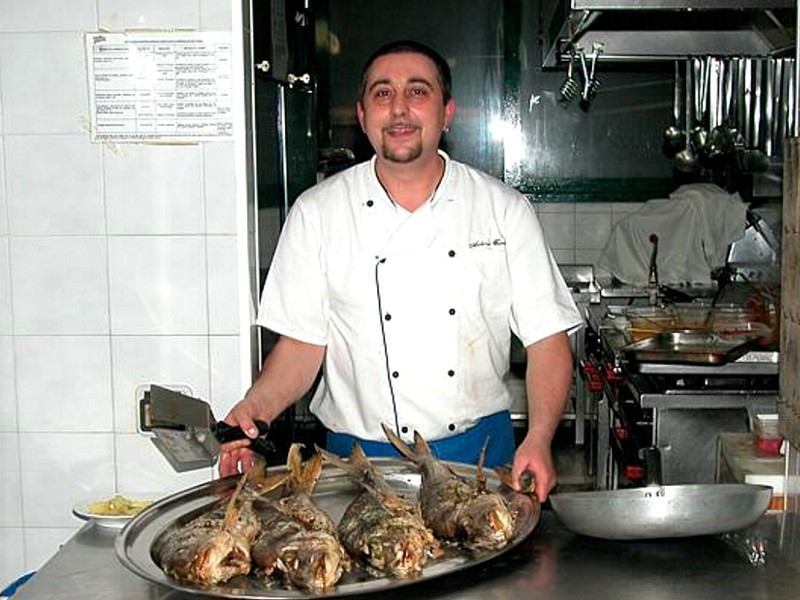 Foto 13/18 - Lo chef Antonio mostra, con orgoglio, un grande vassoio di spigole pronte per