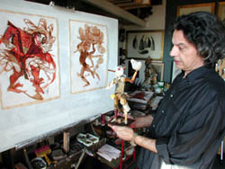 di chine e pastelli, fino a giungere ad un lavoro di raffinato collages dove