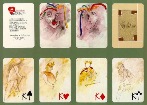 Mazzo pubblicitario. Edizione speciale per una azienda, tra le più famose al mondo, fabbricante di carte da gioco. Figure particolari stilizzate.