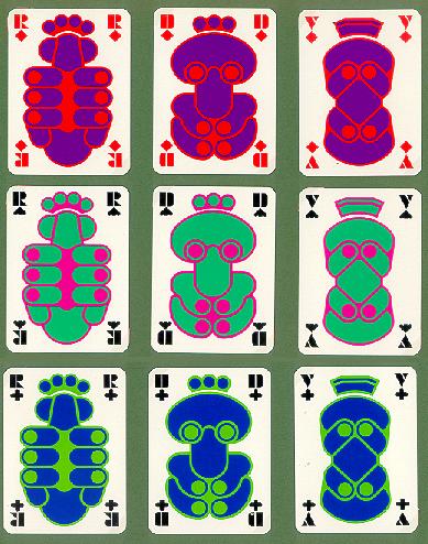 Elaborazione grafica ispirata al disegno delle carte su fondo violetto.