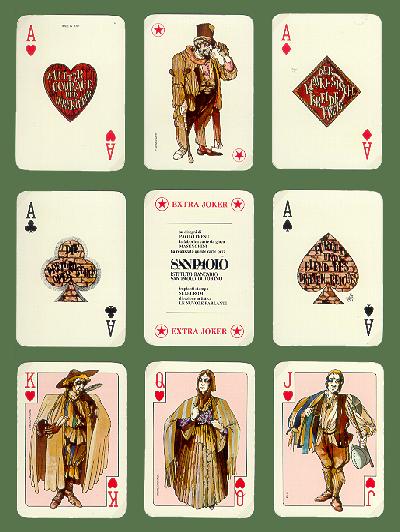 Mazzo di carte pubblicitario realizzato per il noto Istituto Bancario San Paolo di Torino. Le figure del