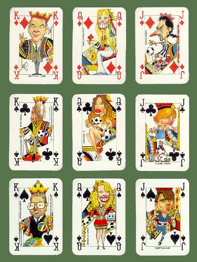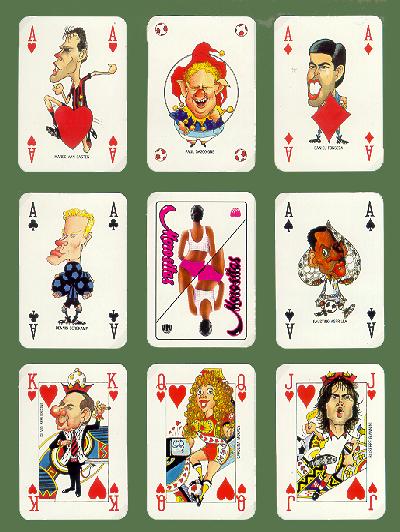 Le figure del mazzo di carte sono costituite da caricature di giocatori di calcio in auge nel