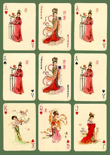 Questo mazzo di carte è stato realizzato ispirandosi alla famosa novella omonima di Cao Xueqin, poeta del XVIII secolo. Le immagini sono tutte figure di donna