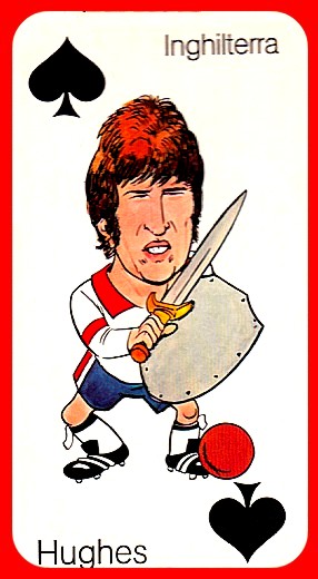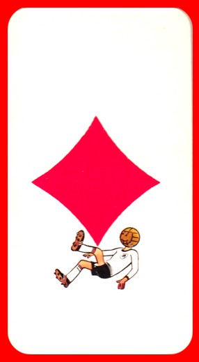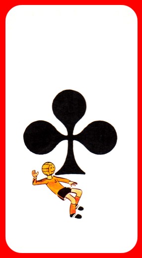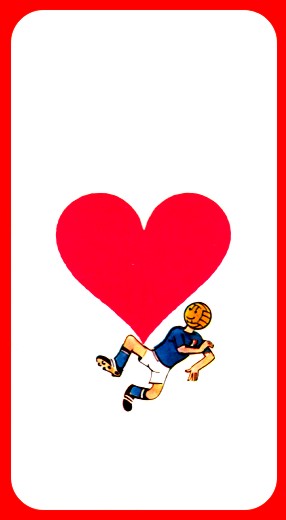 Simbolo del pallone da calcio al centro della carta su sfondo rosso; logo