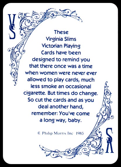 Mazzo promozionale realizzato per conto di Virginia Slims, un formato di sigarette per signora della multinazionale Philip Morris Inc.