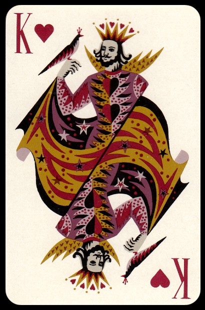 Le figure del seme di Cuori, pregevoli per la loro grazia e per le linee flessuose, richiamano rappresentazioni di eventi medievali. Il tema utilizzato per l'Asso di Cuori, che è un Uccello Lira che porta un cuore ardente sul