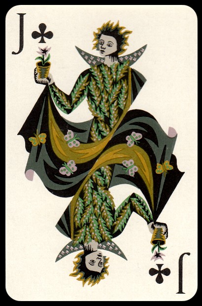dorso, lo si ritrova sia nel Re che nel Fante. Il Fante di Cuori è rappresentato mentre tiene in mano una gabbia dalla quale l'Uccello Lira è fuggito ma nella quale c'è ancora un cuore prigioniero.