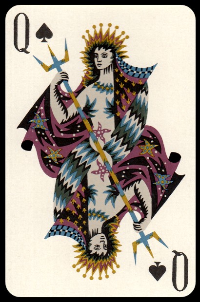 Le figure del seme di Picche sono ispirate alla vita del mare e hanno sempre il tema ricorrente del tridente. Stelle marine decorano il loro abbigliamento. L'Asso di Picche è formato da due delfini che con le loro code sorreggono